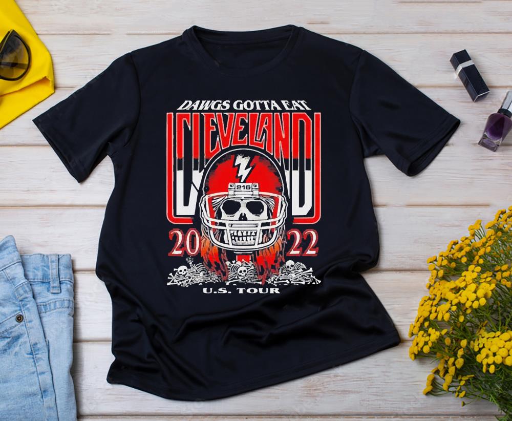 I like the direction at the home in the way are going I love the helmet although I feel like if you’re going with the C logo make it look like a Skull Dawgs Gotta Eat Cleveland 2022 U.S Tour Shirt C on the helmet why are we going back to just the horseshoe that looks like a u they’re not the undie Annapolis Colts you know if you’re gonna go for the C go for the C turn it on the helmet and just didn’t do that that’s a little bit perplexing to me I don’t know about the shoulders on this one I don’t love that and it looks okayI think it looks okay not amazing and then for the Brickyard theme again this is not a very NFL feel to it. Hey um I know that you’ve probably checked it out and we we’ve talked about it at length today but did you go through the schedule and what are your initial thoughts how would you characterize the browns 2022 scheduleoh it’s going to be amazing I was able to check it out a little bit I didn’t see too much of it. Yeahi got that it happened early in the season. No I understand I understand I don’t know that I could pinpoint necessarily a specific a specific date um but certainly as we got closer to um you know the grand jury proceedings you know we had we had gathered enough information or I should say a lot of information regarding the the criminal and civil proceedings as well as to sean the the person so I would say it was you know it was certainly perhaps maybe a little bit before that time where you know we felt we did feel good about the information that we hadbut um you know obviously um you want a due process and legal process to bear out mention the word optics so from the outside the optics look like an elite player worth the risk are the optics correct that if he were not as talented the organization would not have gone down this path and done the due diligence it says it did. Er sorry good eveningsir. And so it’s similar to the font you see hanging behind chris the old font that they had but that one had a block shadow on it and what they have now they’ve just tweaked that font a littleit’s still a very rounded number font and now you have no block shadow. Uh soyeah